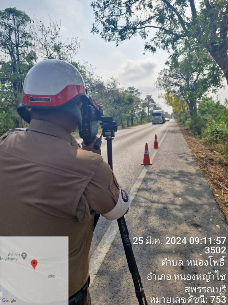 วันที่25 มี.ค. 67 เวลา09.00น.ถึงเวลา 09.30น. ร.ต.ท.ประสิทธิ์ชัย เพชรปานกัน รอง สว.(จร.)สภ.หนองหญ้าไซ พร้อมสายตรวจจราจรตั้งกล้องตรวจวัดความเร็วเพื่อตรวจจับผู้กระทำผิดและป้องกันอุบัติเหตุ ถนน3502 ไม่พบการกระทำผิด