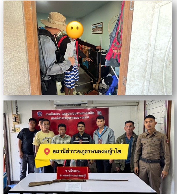 เมื่อวันที่ 11 ต.ค.2567 พ.ต.อ.ชัยชาญพัฒน์ ยติรัตนกัญญา ผกก.สภ.หนองหญ้าไซ ได้สั่งการให้พ.ต.ท.สุทธิเกียรติ โพธิสุทธิ์ รอง ผกก.สส.ฯ พ.ต.ต.เฉลิมศักดิ์ ประเมนาโพธิ์ สว.สส.ฯ พร้อมกำลังชุดสืบสวน ร่วมกันจับกุมตัว นายหัถพลหรือเอ ติ่งหมาย อายุ 42 ปี บ้านเลขที่ 57 หมู่ที่ 9 ต.หนองหญ้าไซ อ.หนองหญ้าไซ จ.สุพรรณบุรี พร้อมด้วยของกลาง อาวุธปืนยาวขนาด .22 (ลูกกด) ชนิดประกอบขึ้นเอง (ไม่มีหมายเลขทะเบียน) จำนวน 1 กระบอก โดยกล่าวหา “มีอาวุธปืนไว้ในความครอบครองโดยไม่ได้รับอนุญาต”เหตุเกิดและจับกุมผู้ต้องหาได้ที่ บริเวณหน้าเพิงพักไม่มีเลขที่ หมู่ที่ 13 ต.หนองหญ้าไซ อ.หนองหญ้าไซ จว.สุพรรณบุรี เมื่อวันที่ 11 พฤศจิกายน พ.ศ.2567 เวลาประมาณ 14.00 น. มีการดำเนินการตาม พ.ร.บ.ป้องกันและปราบปรามการทรมานและการกระทำให้สูญหาย พ.ศ.2565 มาตรา 22 จึงได้นำตัวผู้ต้องหาส่ง พนักงานสอบสวน สภ.หนองหญ้าไซ เพื่อดำเนินคดีตามกฎหมายต่อไป