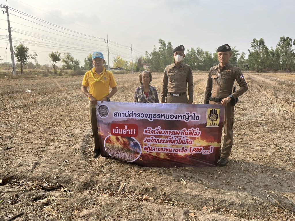 ประชาสัมพันธ์ ประชาชนในพื้นที่ ห้ามไม่ให้เผาป่า ตอซังข้าวอันก่อให้เกิดมลพิษอากาศ(PM 2.5)และอาจก่อให้เกิดการลุกลามไปไหม้อาคารบ้านเรือนใกล้เคียง
