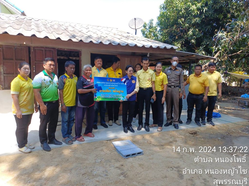 ภายใต้การอำนวยการของ พ.ต.อ.ชัยชาญพัฒน์ ยติรัตนกัญญา ผกก. สภ.หนองหญ้าไซ ได้มอบหมายให้ พ.ต.ท.บุญถิ่น พุ่มอ่ำ สวป.สภ.หนองหญ้าไซ พร้อมสายตรวจ ต.หนองโพธิ์ ร่วมฝ่ายปกครอง และสาธารณสุขอำเภอหนองหญ้าไซ ร่วมส่งมอบบ้านให้ นายเพียว รโหฐาน บ้านเลขที่ 60 ม.6 ต.หนองโพธิ์ อ.หนองหญ้าไซ จ.สุพรรณบุรี