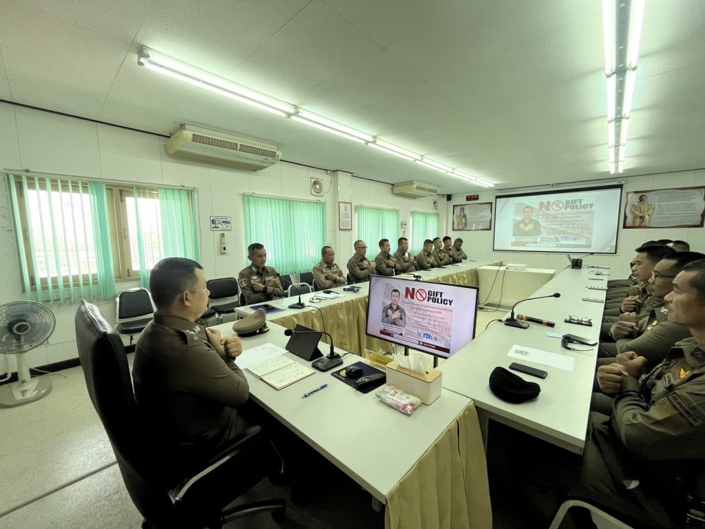 พ.ต.อ.ชัยชาญพัฒน์ ยติรัตนกัญญา ผกก.สภ.หนองหญ้าไซ ได้ชี้แจงแจ้งประกาศของสถานีตำรวจหนองหญ้าไซ เรื่อง การต่อต้านการรับสินบนและไม่รับของขวัญและของกำนัลทุกชนิด (์No Gift Policy) จากการปฏิบัติหน้าที่่ แก่ข้าราชตำรวจในสังกัด