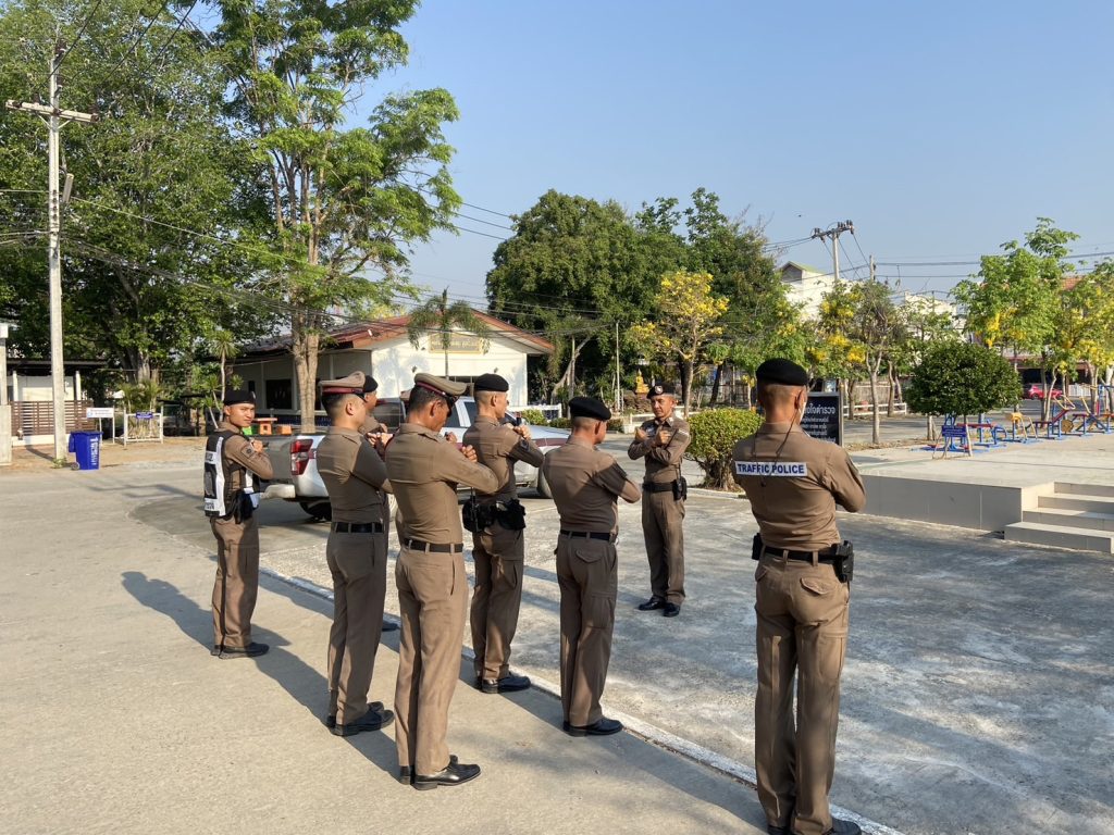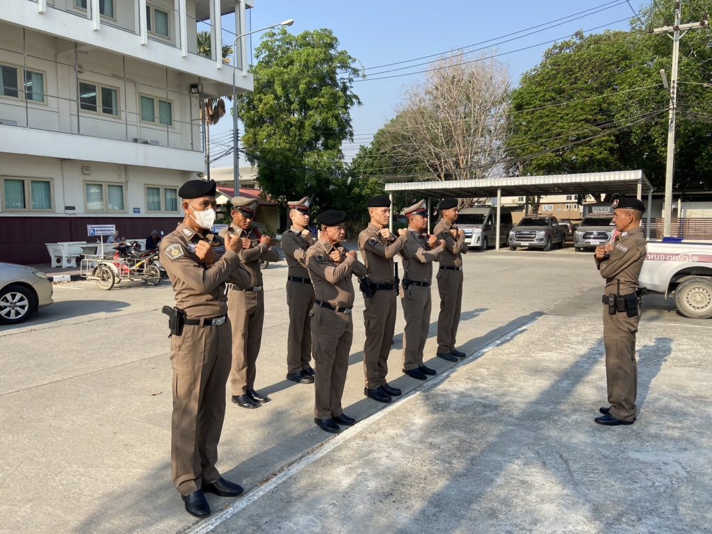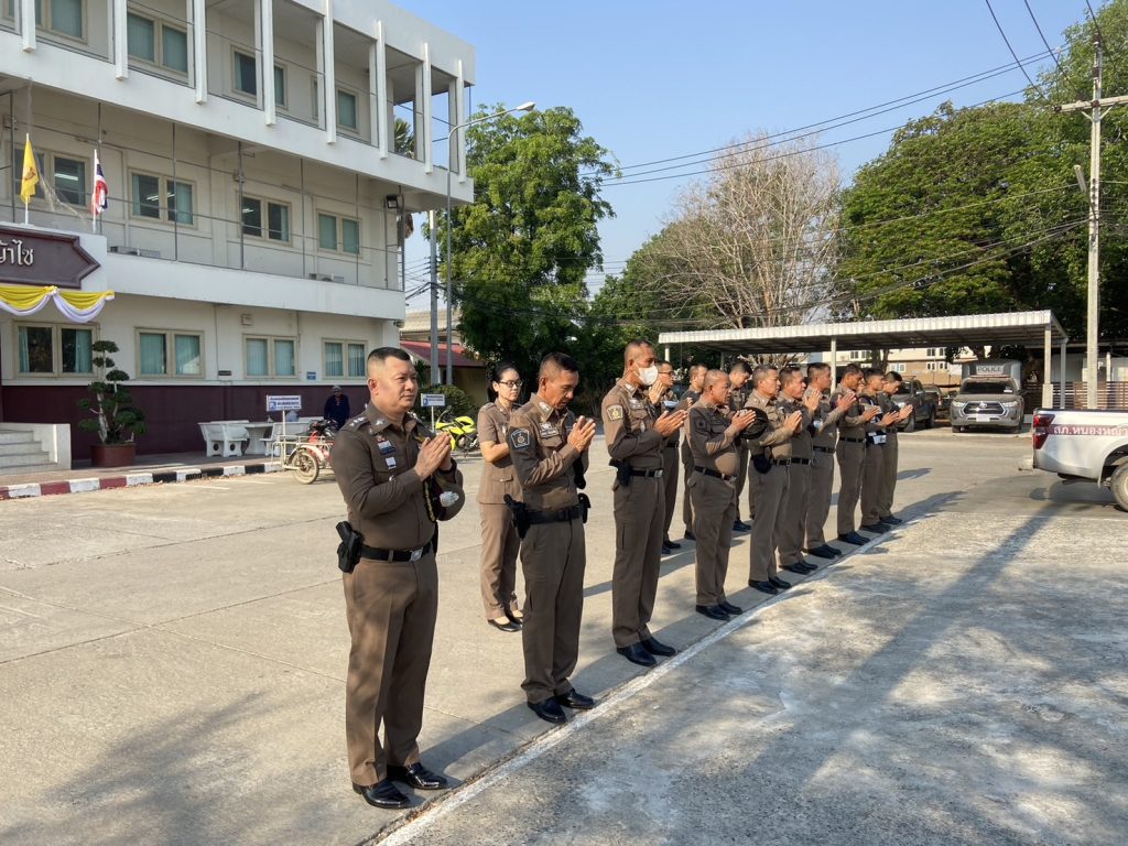 วันที่ 1 เมษายน 2567 เวลา 08.00 น. พ.ต.อ.ชัยชาญพัฒน์ ยติรัตนกัญญา ผกก.สภ.หนองหญ้าไซ,พ.ต.ท.สมชาย ธัญญเจริญ รอง ผกก.ป.สภ.หนองหญ้าไซ พร้อมด้วยข้าราชการตำรวจสายงานป้องกันปราบปราม และสายงานอำนวยการ สภ.หนองหญ้าไซ ร่วมเข้าแถวแสดงการเคารพธงชาติ สวดมนต์ไหว้พระ และกล่าวคำปฏิญาณตน อุดมคติตำรวจ ในการนี้ได้อบรมชี้แจงการปฏิบัติตน จริยธรรม จรรยาบรรณตำรวจ ตรวจความพร้อมอุปกรณ์และปล่อยแถวออกปฏิบัติหน้าที่