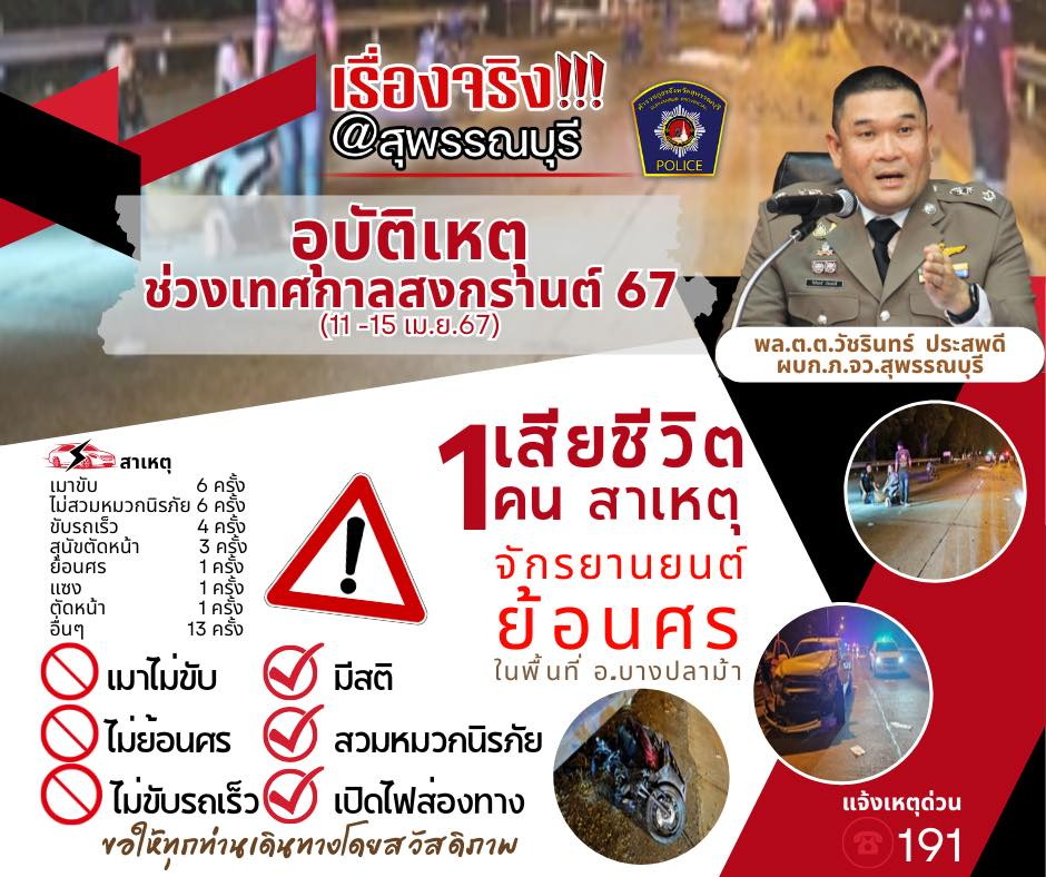 ตำรวจภูธรจังหวัดสุพรรณบุรี👮🏼 เตือนอุบัติเหตุในช่วงสงกรานต์‼️ “เรื่องจริง @สุพรรณบุรี”อุบัติเหตุทางถนนในช่วงเทศกาลสงกรานต์ 2567