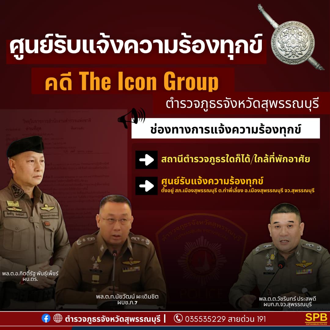 📣ประชาสัมพันธ์ ผู้เสียหายที่โดนหลอกให้ร่วมลงทุน The Icon Group ท่านสามารถแจ้งความร้องทุกข์ได้ที่สถาน