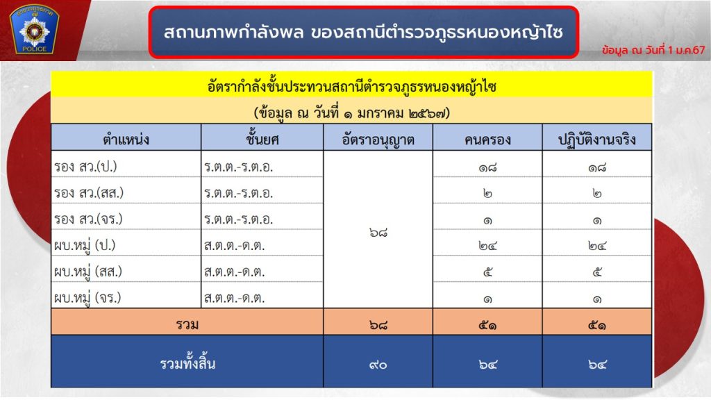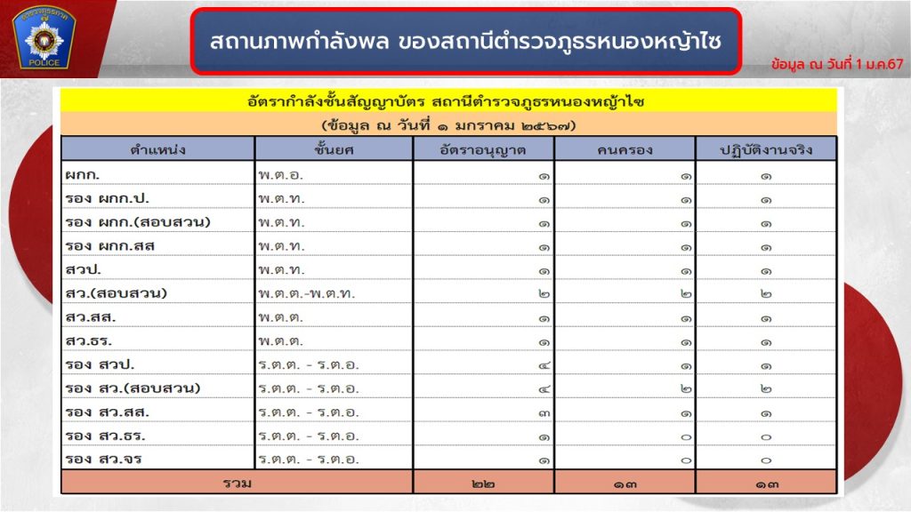 อัตรากำลังของสถานีตำรวจภูธรหนองหญ้าไซ