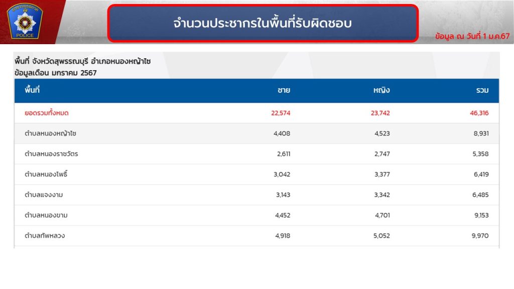 จำนวนประชากรในพื้นที่รรับผิดชอบ ณ วันที่ 1 มกราคม 2567