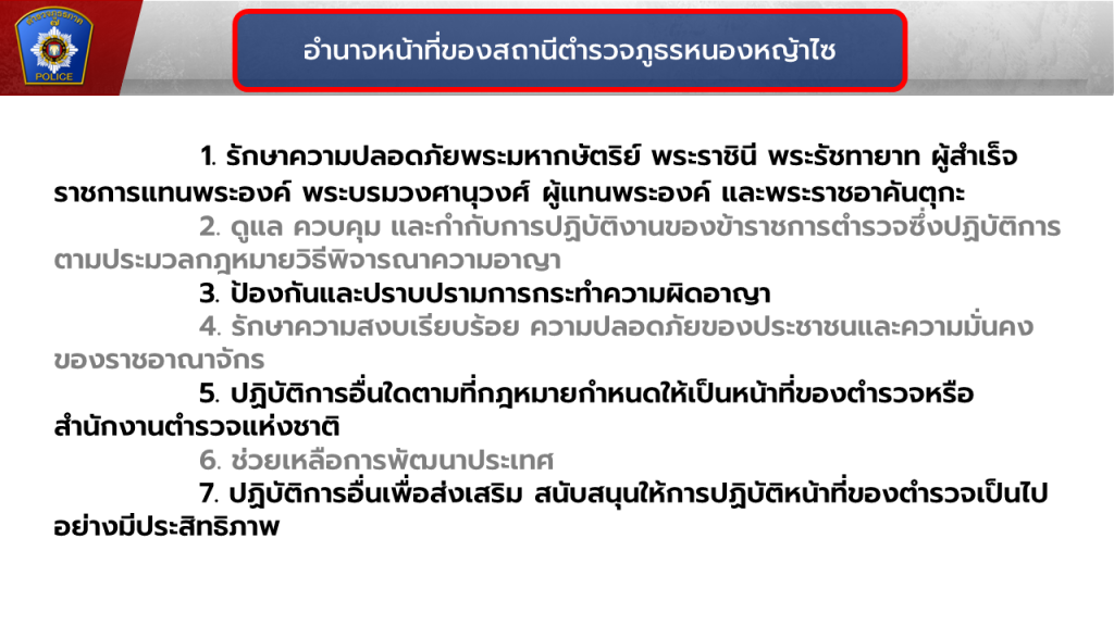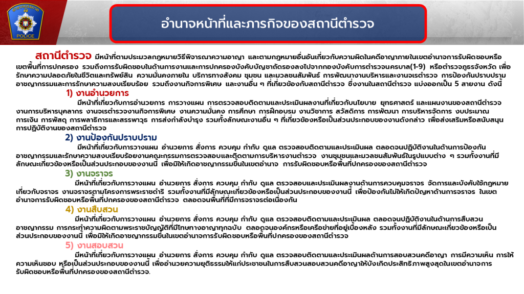 อำนาจหน้าที่ของแต่ละตำแหน่งในสถานีตำรวจ